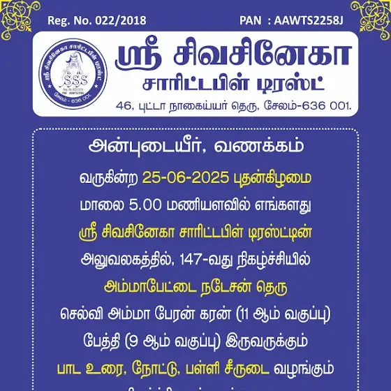 வணக்கம் எங்கள் டிரஸ்டின் 147வது நிகழ்ச்சி நாளை நடைபெறவுள்ளது