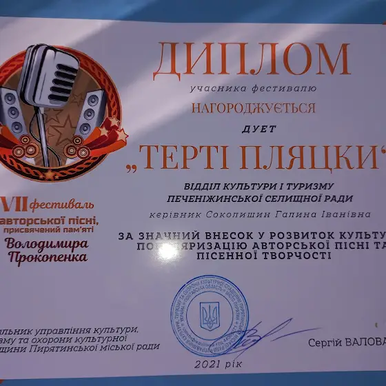 В травні 2021 року у Пирятині Полтавської області проводився фестиваль авторської пісні, присвячений пам'яті Володимира Прокопенка. Сьогодні нам прийшли нагороди з цього фестивалю. Щиро дякуємо працівникам Пирятинський Кгц