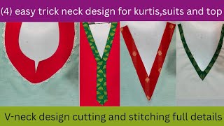 🌸(4) design easy trick and tips💫 neck design with lace /treding neck design/ sawan kurti neck design