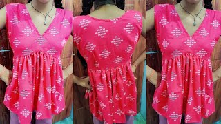 4 tucks belt blouse pattern cutting and stitching full details✅ सिम्पल ब्लाउज गोल गला बनाने का सीखें