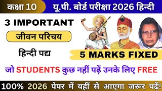 Class 10 Hindi पद्य महत्वपूर्ण जीवन परिचय || Most Important Jeevan Parichay || UP Board Exam 2026 ||