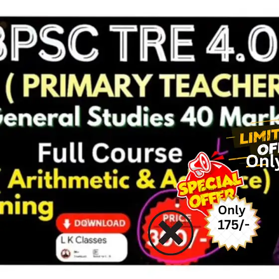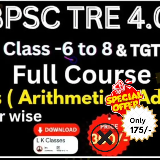 आप सभी के अनुरोध पर हमने 24 hours के लिए BPSC AEDO, TRE 4.0 के Course पर Discount ( महा ऑफर) दे दिए हैं, आपलोग इसे L K Classes App Download करके इसे join कर सकते है ✅