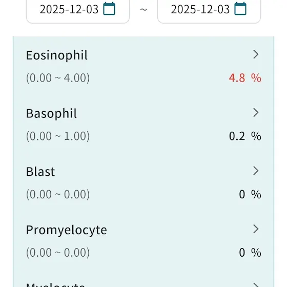 감기로 인해 혈액검사 결과가