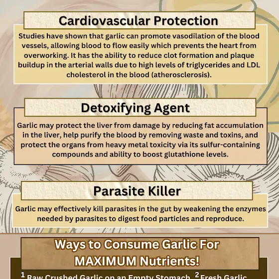 Whether consumed fresh, powdered, pickled, or roasted, garlic is an AMAZING (and pungent 😅) addition to any diet. Above all the delicious ways that it enhances our dishes, it should be recognized that garlic has POWERFUL medicinal properties for the human body.