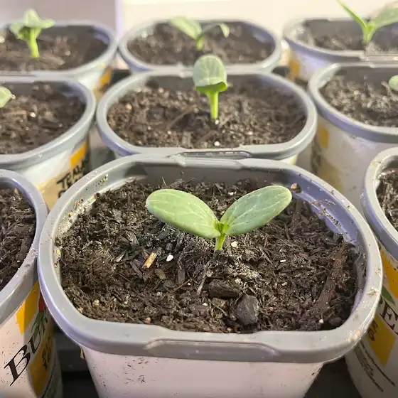 Our melon seedlings were reaching to the heavens and flopped over along their journey 😅 (we kept them on the heat mat for too long). When we first started, we would’ve tossed them out, believing that we had to start completely over.