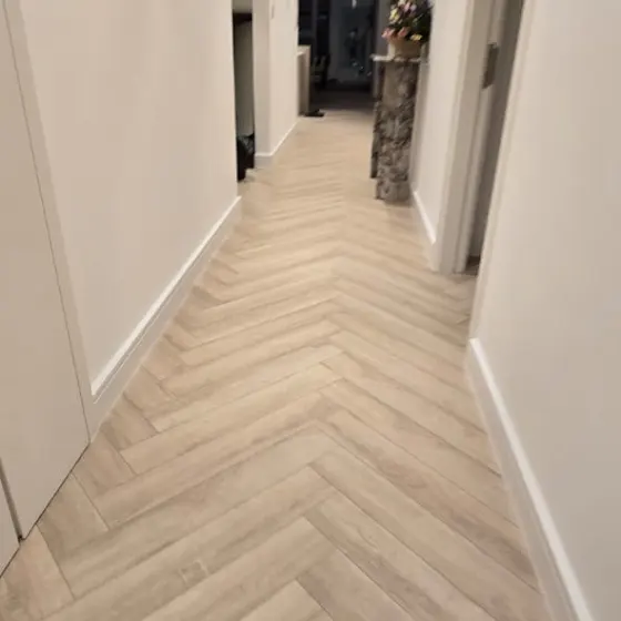 Another beautiful transformation completed with high-quality SPC flooring installed in a clean, modern herringbone design. The new flooring brings brightness, elegance, and a luxury feel to every room โ from the hallways to the bedrooms and kitchen.