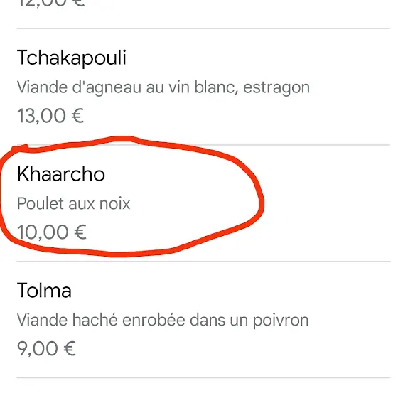 Дорогие эта запись для особо умных, которые лучше всех все знают. А я конечно ничего не знаю, поэтому просто оправдываюсь. Это скриншоты с меню и с сайта самого ресторана в Париже. Это не сациви,это самое настоящее харчо. Нет ошибки не у меня, не у ресторана. Харчо (не путать с суп-харчо) и сациви разные блюда, они очень похожи визуально, но готовятся по разному, и на вкус тоже разные. Да многие этого не знают, просто спрашивают и получив ответ, говорят спасибо. А некоторые начинают оскорблять, типа сациви и харчо не можешь отличить. А получив ответ, оскорбляют ещё больше, мол хватит людям лапшу вешать, признай что ошибся и заткнись.