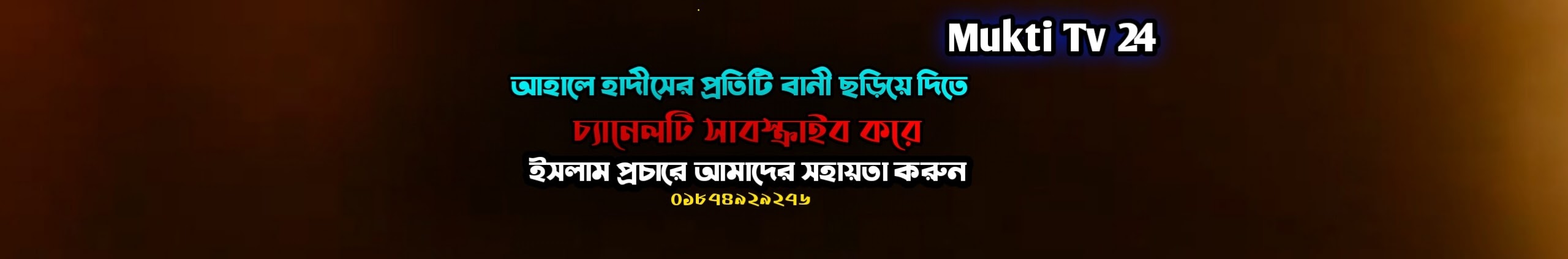 "Mukti TV 24" চ্যানেলে আপনাকে স্বাগতম। আমাদের চ্যানেলে আহলে হাদিসের সকল বক্তার বিষয় ভিত্তিক ভিত্তিও দেওয়া হয়।আলোচনা গুলা পেতে চ্যানেলটি সাবস্ক্রাইব করে আমাদের সাথেই থাকুন। সঠিক ধর্ম প্রচার আমাদের মূল লক্ষ্য।