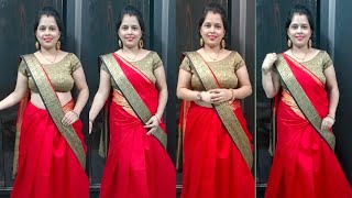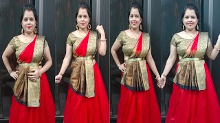 अब शादी पार्टी में पहनने के लिए साड़ी से ही बनाओ लहंगा बहुत सरल तरीके से । lehanga style saree drape