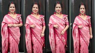 बनारसी सिल्क साड़ी पहने खुले पल्लू में बहुत आरामदायक । how to wear banarasi silk saree in open pallu