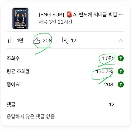 📈 1만뷰 돌파! 그런데 평균 조회율이… 무려 150.7%?! 😳지난주 금요일에 올린 영상이 드디어 1만 조회수를 넘었습니다!그런데 더 놀라운 건 평균 조회율이 150.7% 😮한마디로, 시청자분들이 제 영상을 한 번 보고 또 본다는 뜻이죠.이런 숫자는 처음이라 저도 깜짝 놀랐어요.좋아요 208개, 댓글 12개 — 정말 감사드립니다 🙏AI·반도체 ‘빅딜’ 주제를 다룬 영상이었는데,역시 타이밍이 좋았던 것 같네요.👉 혹시 아직 안 보셨다면,지금 영상 확인하고 여러분의 의견도 댓글로 남겨주세요!🎬 조회수 1만뷰 영상 보기👇youtube.com/shorts/CDXBRW0wAo...#AI #반도체 #빅딜 #한국 #스타게이트 #이재명 #샘알트만 #Samsung #SK #AIdeal #Semiconductor #Korea #BigDeal #StarGate #오픈에이아이 #주식한입오피셜 #주식한입 #유튜브성장기록