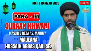🔴Live Tilawat E Quran Para 5 || Quran Tafser | Maulana Hussain Abbas Qari Sb || Masjid E Reza as Mhv