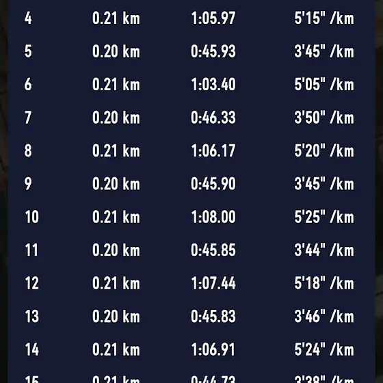 4/6일 10km 대회 4일전 진행한 인터벌 훈련입니다200/200 45초(질주)/65초 (회복)마지막까지 화이팅 ~!!