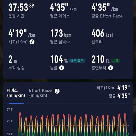 4/6일 10km 대회 4일전 진행한 인터벌 훈련입니다