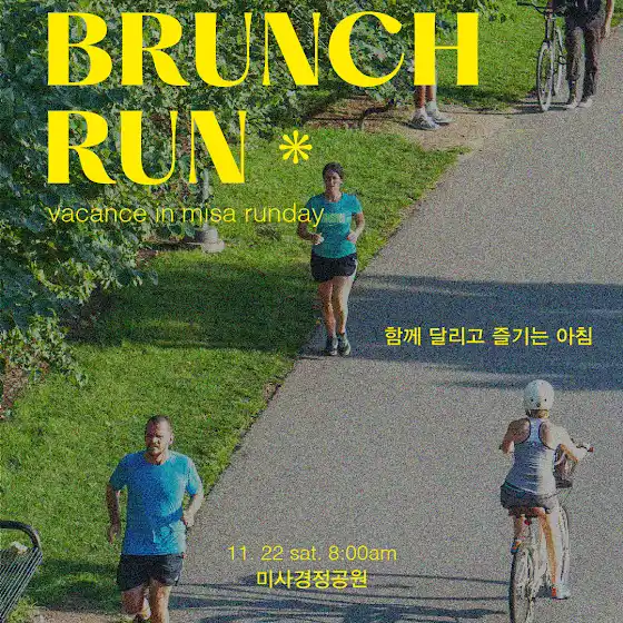 🏃♂️🏃♀️ BRUNCH RUN 🌞바캉스인미사와 함께 달리고,맛있는 브런치로 아침을 마무리하는힐링 런데이를 준비했어요!🗓 11월 22일 토요일⏰ 8:00am📍 미사 경정공원(*카페 → 공원 이동)천천히, 함께, 기분 좋게 달린 뒤가벼운 근막 이완 & 코어 운동으로몸을 부드럽게 깨워보는 시간!마지막에는 바캉스인미사에서브런치 & 커피 한 잔까지☕🥐완벽한 주말 아침, 같이 만들어요✨👟 참가비 15,000원(러닝 프로그램 + 브런치&커피 포함)📩 신청은 댓글로 (인스타그램은 DM으로)성함/연락처/러닝경험을 적어 보내주세요!선착순 10명 제한 🏃♀️💨함께 즐기는 러닝, 같이 해요🤍