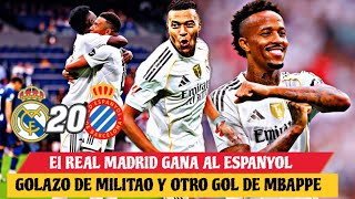 🚨REAL MADRID GANA 2-0 al ESPANYOL en LA LIGA - GOLAZO DE MILITAO - OTRO GOL de un IMPARABLE MBAPPE 🔥