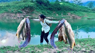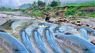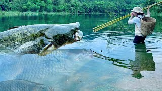 Traditional Fishing Skills - Cold Weather, Catching Giant Fish In The Forest With Bamboo Fishing Rod
