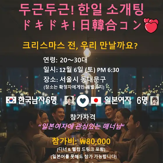12월6일 동대문쪽에서 한국남자&일본여자 소개팅에 참석하실 한국 남자분 모집합니다