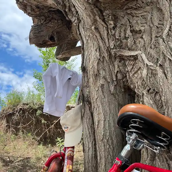 Отлично провела время с братом. Прокатились на велосипеде более 15км, поплавали в Волге, полазили по деревьям и все это за один день!