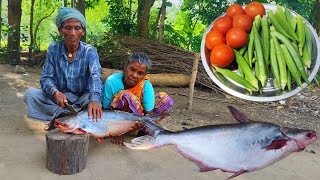 5kg PANGASH FISH curry cooking | big size FISH COOKING by tribe rural family | old grandma lifestyle