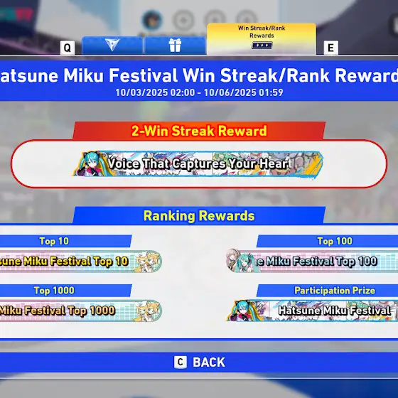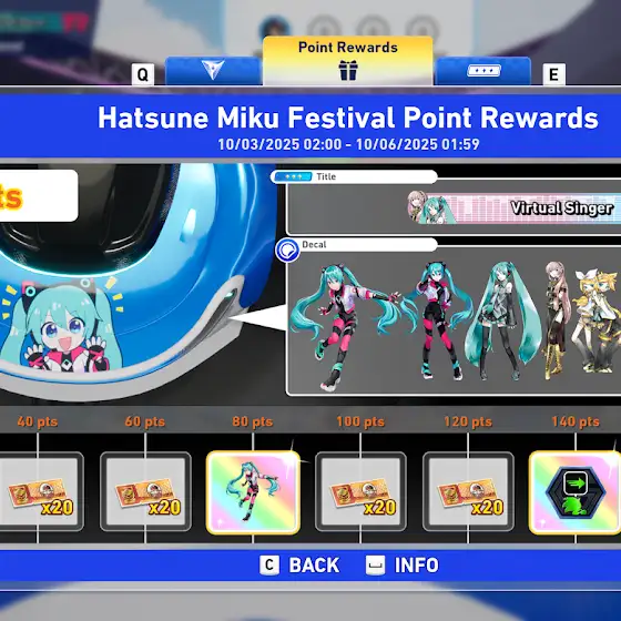 Rewards you can get are a title card, vocaloid stickers, a special horn sound effect, a special boost character gadget kit and more!