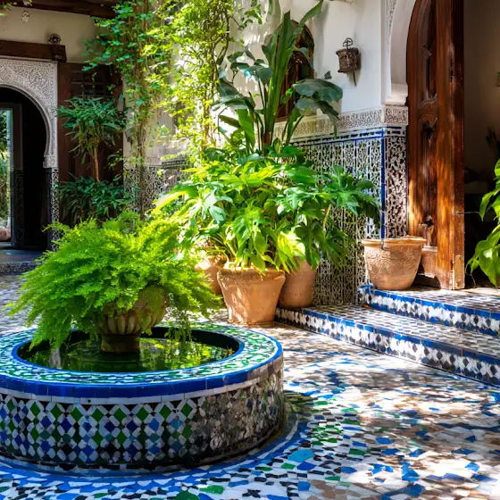 Transform your small backyard into a magical Moroccan-inspired sanctuary with arches, fountains, tiles, and lush plants. 🪴💧