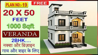2 Bedroom House Plan with Veranda | 1000 sqft house Plan | Small house design | Village house design