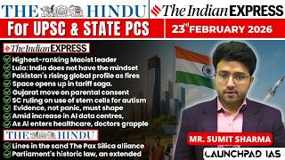 Daily Newspaper Class (The Hindu + Indian Express) for UPSC & State PCS | 23February 2026| Sumit Sir
