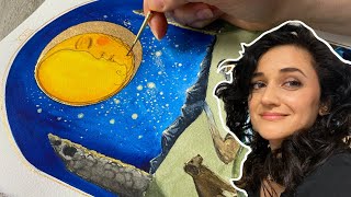 unintentional ASMR: Painting Tarot Card tutorial - how to paint tarot cards - The Moon - watercolour