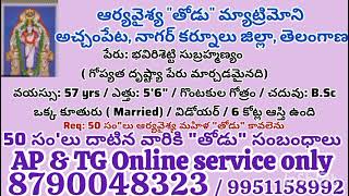 అన్నీ కులాలకు మొదటి,రెండవ సంబంధాలు మాత్రమే చూడబడును మీ ఫోటో, వివరాలు WhatsApp 9951158992 చేయండి. Fees 5,000 కుదిరే వరకు సంబంధాలు పంపబడును. తెలంగాణ, ఆంధ్ర, రాయలసీమ వారికి ఎవరికి ఏ ప్రాంతం వారు కావాలన్న మంచి వారిని చూడబడును .ఈ. మెయిల్: second marriages555@Gmail.com