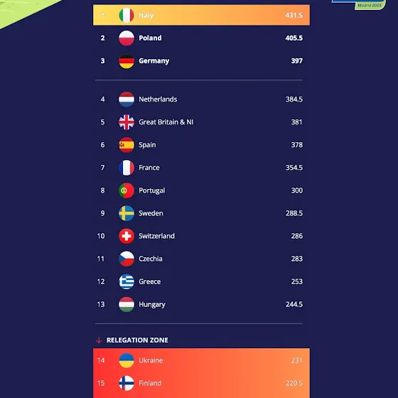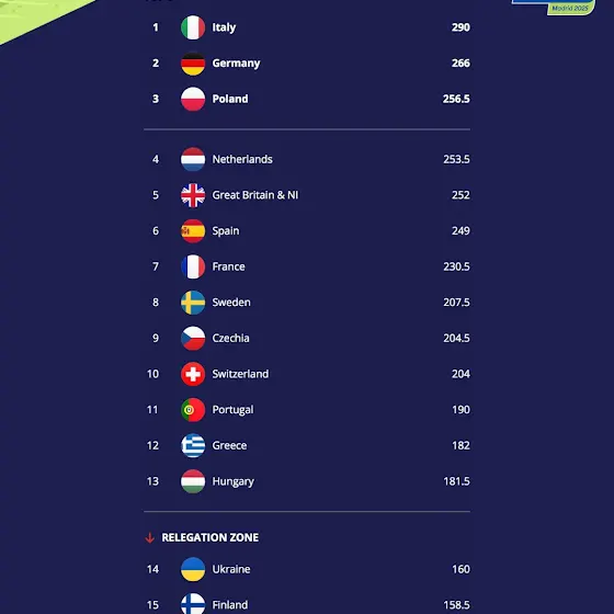 The final standings at the 2025 European Athletics Team Championships! ๐