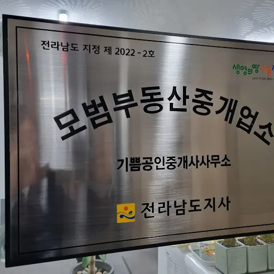 전라남도지사 모범공인중개사사무소 명패와 지정서을 받았습니다.