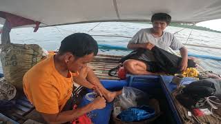 Grilling Black Unicorn Fish ( Surahan ) and Short Mackerel ( Buraw ) while hook Fishing in The Boat.