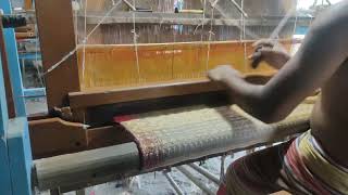 A handloom sari is often woven on a shuttle-pit loom made from ropes, wooden beams and poles. The shuttle is thrown from side-to-side by the weaver. Other weavers use a fly-shuttle loom which can produce different types of patterns. The saris can vary in size and quality