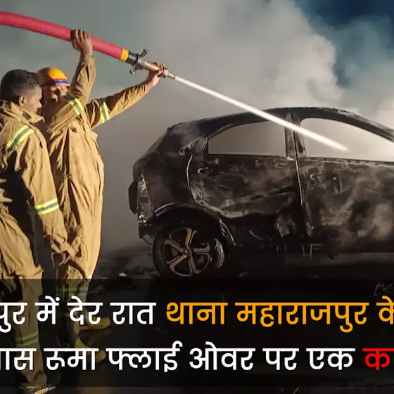 #कानपुर में देर रात थाना महाराजपुर के कुलगांव चौकी के पास रूमा फ्लाई ओवर पर एक कार में लगी आग. #breakingnews