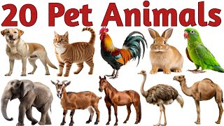 पालतू जानवरों के नाम सीखें | 20 Pets Animals Names in English for Kids Vocabulary Learning Preschool