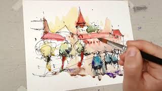 Urbansketching-10 minutes watercolor exercise #watercolorart #aquarelle #inkdrawing #sketchbook #art