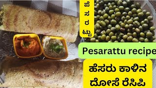 ಆರೋಗ್ಯಕರ ಹೆಸರು ಕಾಳಿನ ದೋಸೆ ಕೇವಲ 2 ಸಾಮಗ್ರಿಗಳಿಂದ- ಪೆಸರಟ್ಟು ರೆಸಿಪಿ -moong dosa recipe - pesarattu recipe