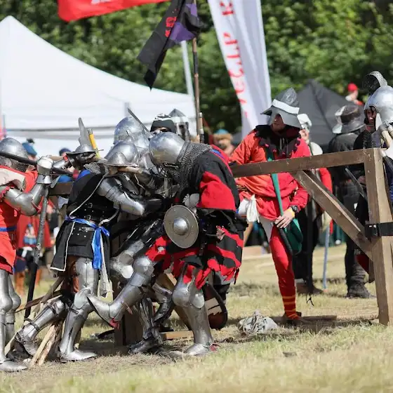 Сказать, что это было легендарно - ничего не сказать. Подобный масштаб сродни реальным средневековым сражениям. Стальные армии движутся друг на друга, блестят доспехи, величайшее напряжение, и вот строи сходятся. Идет перестрелка алебардами, латники с щитами принимают на себя град мощных ударов, но идут вперед. Я с полуторным топором врываюсь в строй соперника, бью в шлем одного из вражеских воинов и под ударами его товарищей отхожу в свой строй, и так несколько атак.