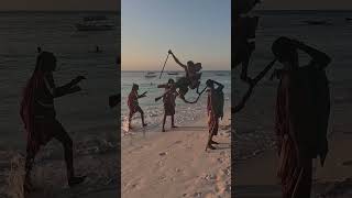 Maasai Tribesmen Jumping on a Zanzibar Beach