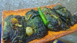 লালশাক দিয়ে শিং মাছের মাখা মাখা ঝোলের তরকারি। lal shak diye shin macher makha makha jhol.