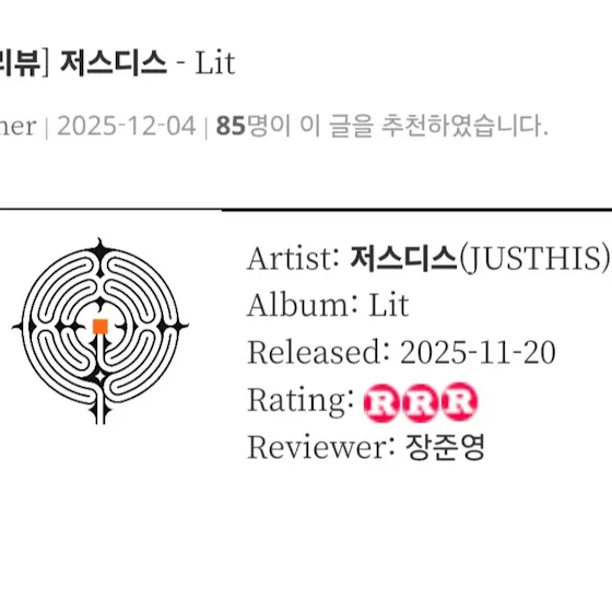 저스디스의 LIT, 올해의 앨범 급인가요?