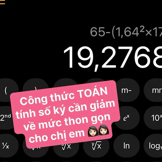 Để biết bạn cần giảm nhiêu để cơ thể thon gọn, chị em bấm máy tính như ví dụ sau : Cân nặng 65 - (chiều cao 1,64 bình phương x 17 bmi thon gọn) ra 19,2 là số cần giảm ấy nha 🤩 #ryanlongfitness #giamcan