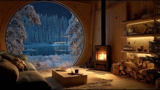 4K Cozy Cabin Fireplace 12 Hours 🔥 Winter Night Ambience