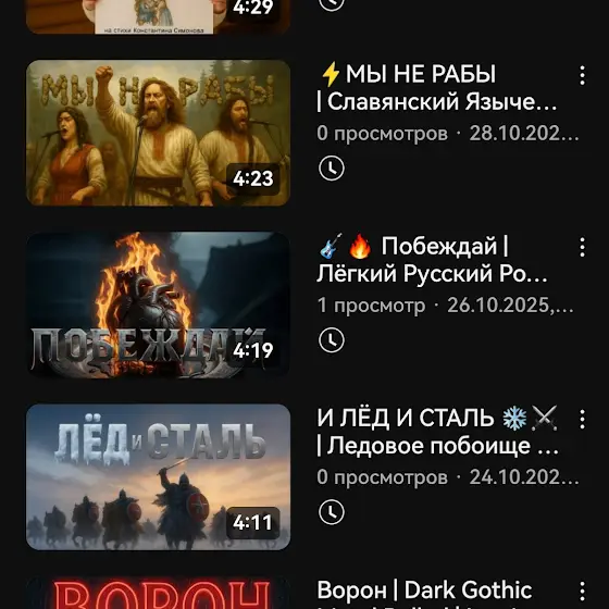 Ты найдёшь видео, наполненные атмосферой рока, славянской мифологии и мощной рок музыки.