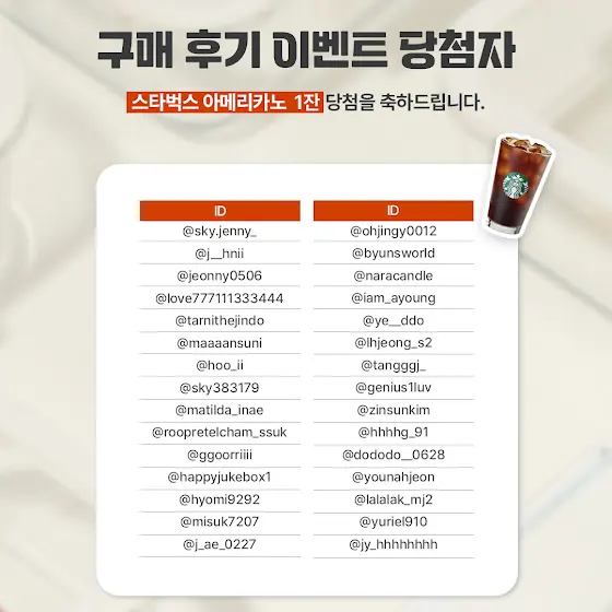 스타벅스 아메리카노 1잔 보내드릴게요!