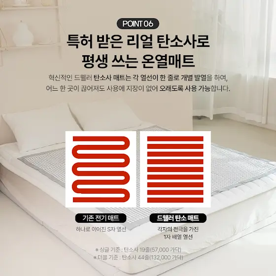 갑자기 날씨가 너무 추워졌죠🥶새로워진 드웰러 탄소매트와 함께 포근한 겨울을 준비할 시간!잠시 후 오전 10시 🕙드웰러 NEW 탄소매트오픈합니다 🙌선착순 및 구매완료 이벤트도 크게 준비되어 있으니필요하셨던 분들은 미리 시간 체크해두세요😉🔵구매링크 바로가기🔵link.inpock.co.kr/salimpop_official——————————————🎁 구매 선착순 이벤트 (100명) 구매 선착순 100명에게 오리지니크 스퀘어 멀티탭 무선 제품을 제공해 드립니다! (1ea, 색상랜덤)🎁 구매완료 이벤트 (50명)구매완료 후, 아래 피드에 구매완료 댓글 남겨주세요!추첨을 통해 50명에게오리지니크 스퀘어 멀티탭 1.5m 제품을제공해드립니다! (1ea, 색상랜덤)——————————————📌 공구 기간 📌10월 20일 월요일 오전 10시 오픈10월 26일 일요일 오후 11시 59분 마감📌 공구 품목 📌드웰러 탄소매트- 사이즈 : 싱글, 더블 ——————————————세탁법부터 주의사항⚠️해외여행 사용법까지 알려드려요🍿📌 세탁법전원 커넥터 분리 → 빨래망에 넣어 세탁기 울코스 단독 세탁 🧺통세탁은 1년에 한 번이면 충분해요.자연건조 후 구김 있으면 낮은 온도로 다림질 가능✨📌 먼지 관리법셀룰로오스 섬유라 먼지 자체가 잘 달라붙진 않지만가끔 돌돌이나 침구청소기로 가볍게 관리 해주세요 :)📌 사용 시 주의사항매트 사용 시 반드시 펼쳐서 사용 해주세요!접어서 사용하면 화재 위험이 있으니 꼭 주의⚠️보관할 때는 접어서 보관하셔도👌🏻(자면서 일부가 살짝 접히는 건 괜찮습니다! 수건처럼 돌돌 말아서 사용하는게 위험해요!)📌 해외여행 시 사용법프리볼트 제품이라 플러그 젠더만 바꿔주면 추운 나라 여행, 캠핑지에서도 문제 없이 사용 가능해요 :)⛺우리의 겨울을 책임질 탄소매트 오래오래 새것처럼 쓰시길 바랄게요💛
