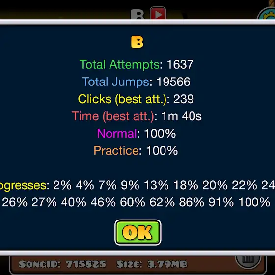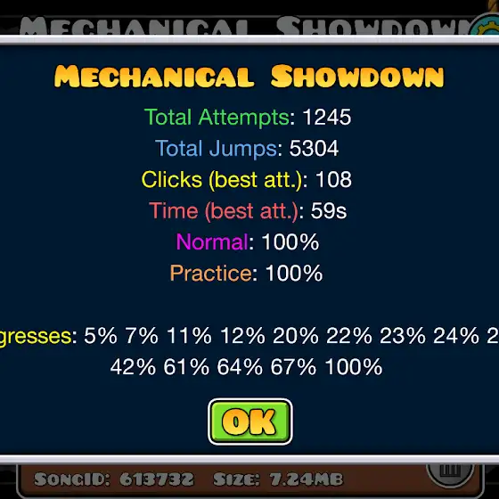 Well Wasen't expecting that but B 100% my second Medium Demon (I dont recommend) idk why this took more attempts than MS