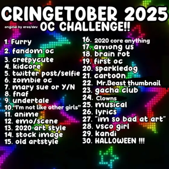 For my posts doing Cringetober- I have made changes to the original prompts list that I got on Pinterest (from a user called Dev!!)