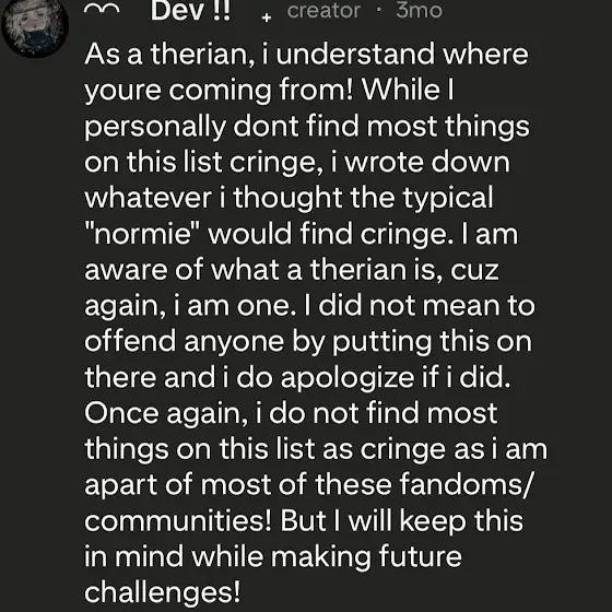|| Please read the second pic form the creator of this Cringetober list explaining why therian is on the list-which explains other prompts that aren’t actually “cringe” 😼